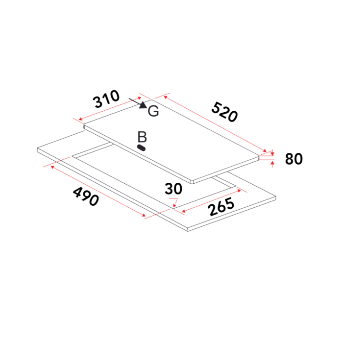 G= Gas Inlet / B=Battery Box Dimension are in mm