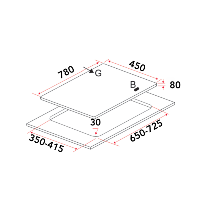 G= Gas Inlet / B=Battery Box Dimension are in mm