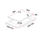 • Cut-Out Size: W650~725 x D350~415, R120mm